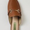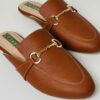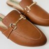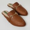 Zapatos cerrado en la parte de adelante con punta redonda, adorno de metal dorado, tipo slide con planta de espuma para mayor comodidad, libre en la parte del talon, fabricado con material sintetico o de cuero. Perfectos para el dia dia, para un look casual o para un look versatil.