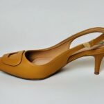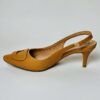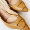 Zapatos cerrados casuales de punta con adorno cuadrado del mismo material del zapato. Fabricado con material sintetico o de cuero de color beige, este modelo tiene una tira con elastico en la parte posterior para dar soporte a la hora de caminar, su tacon es fino y de poca altura. Ideales para un dia de oficina o para un look elegante; ya que todas nuestras plantas son de espuma que se adapta a la forma del pie, brindando mayor comodida.