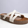 Plataforma con tiras cruzadas, ideal para un estilo casual y cómodo. Suela elevada tipo flatform, que brinda altura sin comprometer la estabilidad, y una plantilla acolchonada para mayor confort. Las correas del empeine, en color blanco, tienen un diseño minimalista y elegante que combina con distintos outfits, desde jeans hasta vestidos veraniegos. Es una opción versátil y moderna para el día a día.