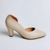 Este modelo es un zapato midi, ideal para un look sofisticado y versátil. Está confeccionado en un material de acabado liso color beige, lo que le da un aire elegante y temporal. Su diseño cerrado con una pequeña apertura en la parte interna del pie proporciona un ajuste cómodo y estilizado. El tacón cuadrado y de altura media aporta un toque de elegancia sin sacrificar la comodidad. Perfecto para combinar con outfits formales o de oficina, así como para elevar un look casual con un toque de clase.